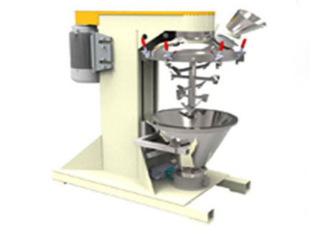產(chǎn)品通過錐形混合腔頂部投入,投料范圍在30%-100%之間,設(shè)備中間有一個(gè)頂部驅(qū)動(dòng)的高速轉(zhuǎn)軸,因此便去除了在產(chǎn)品區(qū)域的密封設(shè)計(jì)以及軸承。在軸上有緊貼內(nèi)壁的槳式混合原件。通過高速旋轉(zhuǎn)的攪拌槳和錐形內(nèi)倉的共同作用將產(chǎn)品由底部帶至混合腔的上部。當(dāng)產(chǎn)品達(dá)到頂部的時(shí)候又重新回落到混合倉中心,如此的產(chǎn)品的方式形成了一種快速的宏觀混合。